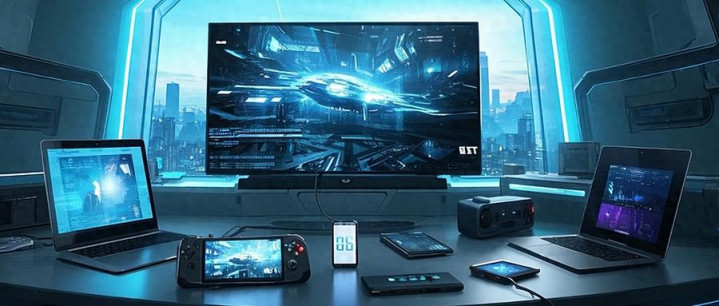 在游戏方面,GPMI打破了移动小屏设备与电视的游戏内容壁垒。不论是手机、游戏笔记本电脑还是Switch等各类游戏掌机,都可以实现一根线一连即投,一根Type-C线就能实现音视频传输与供电,不需要额外的电源线,可以说彻底告别了续航焦虑这一核心痛点。